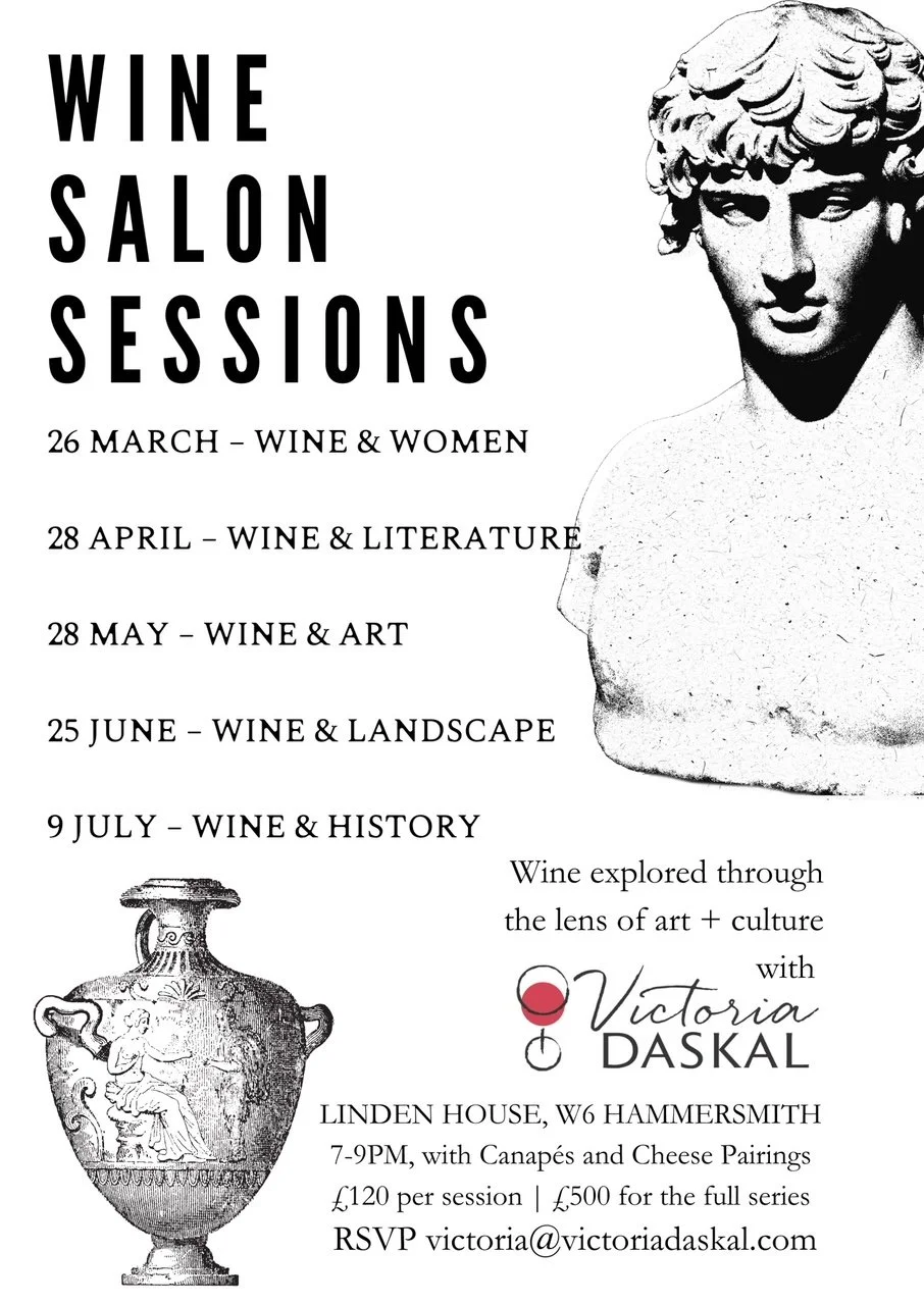 Join wine writer and educator Victoria Daskal for an intimate series of themed wine salons exploring wine through culture, history, art and people. These evenings are designed for curious wine lovers who want to experience wine beyond scores, labels and tasting notes.